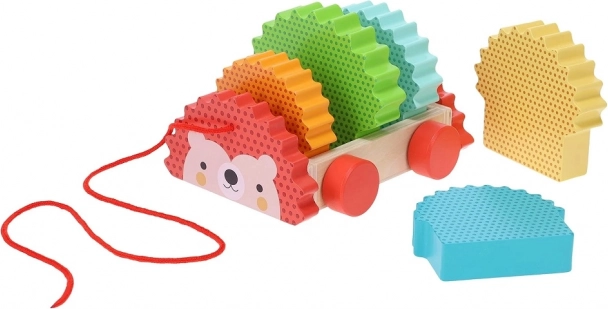 De kleurrijke houten egel trekt de aandacht van elk kind met zijn heldere kleuren en vrolijke uitstraling.