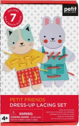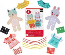 Geef uw kinderen urenlang plezier en leren met deze unieke set. Met twee dierenvriendjes en verschillende kleurrijke outfits kunnen kinderen eindeloos veel combinaties maken. Deze activiteit ontwikkelt de fijne motoriek, verbeterd coördinatie tussen hand en oog en bevordert hun creativiteit. Verpakt in een aantrekkelijke doos die niet alleen leert, maar ook helpt bij correcte recycling.