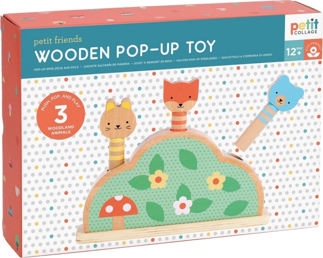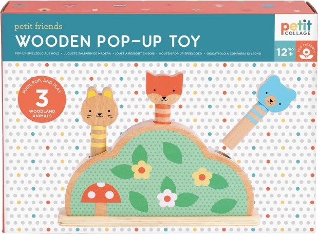 Ontdek speels en veilig plezier voor de allerkleinsten met het houten pop-up speelgoed van PETIT COLLAGE. Drie bosdiertjes op veertjes wachten tot kinderen ze indrukken en laten opspringen – een geweldige activiteit voor de ontwikkeling van fijne motoriek, oog-handcoördinatie en begrip van oorzaak en gevolg. Gemaakt van FSC®-gecertificeerd hout, bedrukt met niet-giftige inkten op waterbasis en verpakt in een milieuvriendelijke verpakking.
