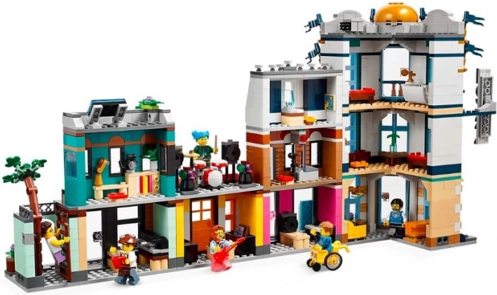 Lego Creator Hoofdstraat is een creatieve bouwset waarmee kinderen drie verschillende stadsscènes kunnen maken, waaronder een drielaags hotel, een muziekwinkel en een café. Een geweldige manier om verbeelding en creativiteit te stimuleren met LEGO-speelgoed.