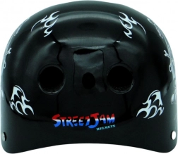 Stijlvolle en veilige helm met schedelmotief voor fietsers, skaters en inline‑skaters. Biedt 9 ventilatieopeningen voor aangename verkoeling, een duurzame verstevigde schaal en EPS‑schuim voor betrouwbare schokabsorptie. Voldoet aan norm EN 1078:2028. Maat S (52–55 cm).