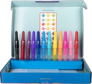 Met een brede waaier aan kleuren en sjablonen kan elk kind een kunstenaar worden en beelden maken volgens zijn of haar fantasie.