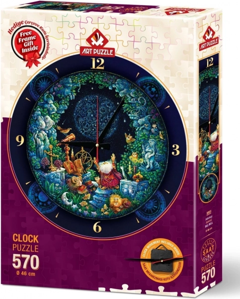 Een originele combinatie van puzzel en klok: leg de ronde puzzel met de tekens van de dierenriem en verander deze in een volledig functionele wandklok. De verpakking bevat alles wat je nodig hebt, inclusief achterplaat, lijst en uurwerk. 570 stukjes, rond dierenriemmotief, diameter 46 cm, uurwerk inbegrepen – gewoon leggen, lijmen en 1× AA-batterij toevoegen (niet inbegrepen).