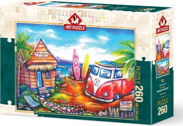 Ontdek de relaxte sfeer van een zomerdag aan zee met de puzzel Surferkamp. De puzzel van ART PUZZLE met 260 stukjes is een ideale keuze voor momenten van ontspanning en voor samen puzzelen met het gezin, waarbij je je hoofd leegmaakt en geniet van het eindresultaat met een formaat van ca. 48 × 34 cm.