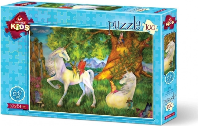 Geniet van ontspanning en puzzelplezier met een kwalitatieve puzzel met een charmant eenhoorndesign. Dankzij de 100 stevige stukjes is hij perfect voor gezellige momenten met het gezin en voor het ontwikkelen van fijne motoriek en logisch denken.