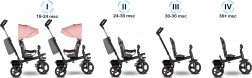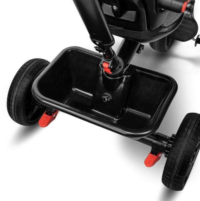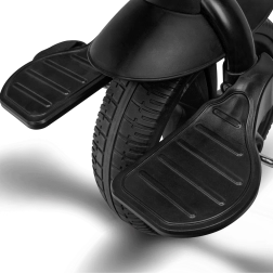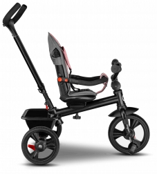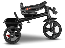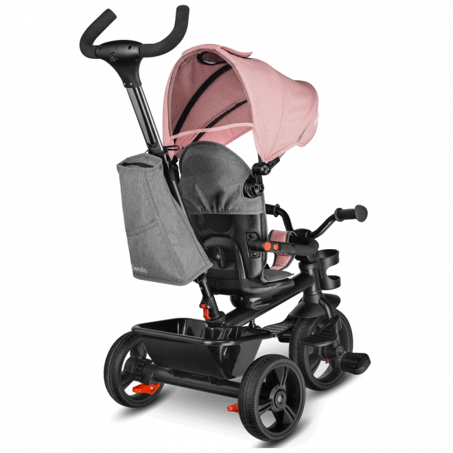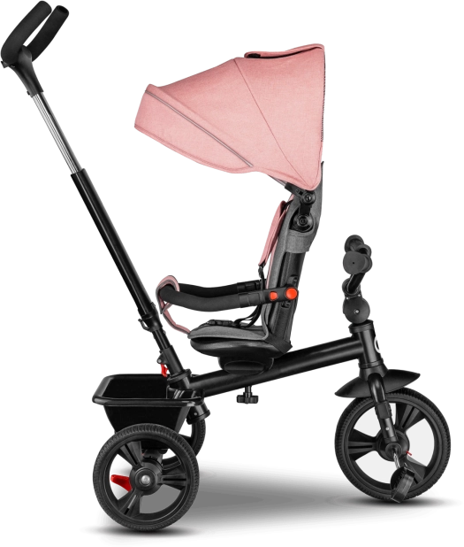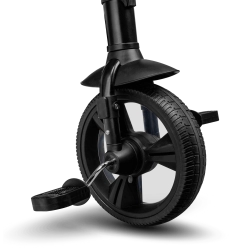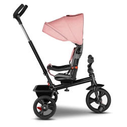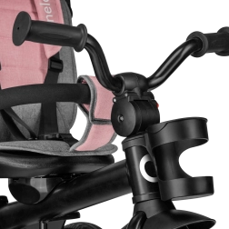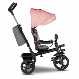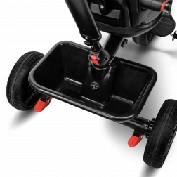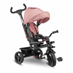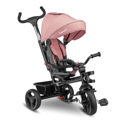 Voor maximaal comfort is er een verstelbare kap met kijkvenster, een in hoogte verstelbare duwstang voor ouders en praktische uitrusting – mandje, tas en flessenhouder. De veiligheid wordt verhoogd door 3-puntsgordels, een beugel, reflecterende elementen en twee onafhankelijke achterremmechanismen. De driewieler is eenvoudig op te vouwen tot een compact formaat en kan na het inklappen comfortabel worden gedragen dankzij het geïntegreerde handvat.