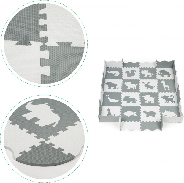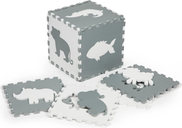 De schuimpuzzelmat met dierensilhouetten dient niet alleen als bescherming, maar ook als educatief element voor kinderen.