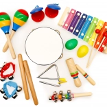 Van tamboerijn en triangeltje tot maracas en belletjes – de gevarieerde samenstelling wekt nieuwsgierigheid en ondersteunt de eerste muzikale stapjes.