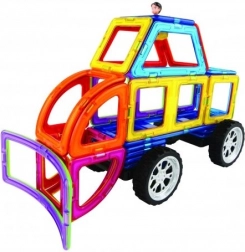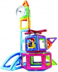 Set met een groot aantal basis- en ronde onderdelen en accessoires. Geschikt voor grotere architectonische bouwwerken, auto’s, machines, draaimolens, vliegtuigen, en ook voor liefhebbers van dieren, dinosaurussen en denkbeeldige bovennatuurlijke wezens. De set is zeer rijk aan accessoires voor de bouw van huizen en kastelen, zoals verschillende soorten ramen, bakstenen inzetstukken, balkons en bomen. Voor inspiratie is er een gedetailleerd uitgewerkt boekje inbegrepen. Aantal onderdelen: 115 20 driehoeken, 30 vierkanten, 2 vijfhoeken, 2 zeshoeken, 4 hoge driehoeken, 4 dubbele rechthoeken, 1 driedubbele rechthoek, 4 ruiten, 4 trapeziums, 4 sectoren, 4 lange sectoren, 1 propeller, 2 enkele ramen, 2 dubbele ramen, 2 balkons, 6 bakstenen inzetstukken, 2 gedeelde ramen en 2 bomen, 2 figuren, 2 dubbelwielen, 2 bogen, 2 lange bogen en andere accessoires. De creatieve magnetische bouwset Magformers maakt het mogelijk om een groot aantal driedimensionale objecten te bouwen met behulp van tweedimensionale kunststof veelhoeken. Magformers traint de fijne motoriek, stimuleert creativiteit en leert kinderen kleuren en basisgeometrische vormen. De afmetingen van de onderdelen en de zorgvuldig gekozen vormen zorgen voor maximale veiligheid van het speelgoed. Het materiaal waarvan de set is gemaakt, voldoet aan de strengste hygiënische en gezondheidscriteria. De onderdelen zijn groot genoeg om niet ingeslikt te kunnen worden en zijn praktisch onbreekbaar. MAGFORMERS kan ook zeer goed worden gecombineerd met de bekende magnetische bouwset Geomag. Illustratieve video van de magnetische bouwset Magformers Mastermind