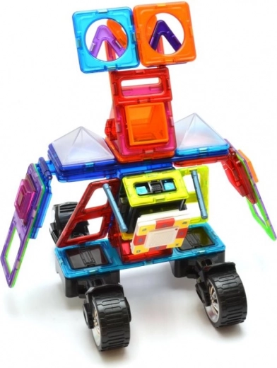 Ontdek de creatieve magnetische bouwset MAGFORMERS met 40 delen en bouw rijdende robots, buggy’s, vrachtwagens en ruimtescheepjes. Dankzij magnetische elementen, draaibare onderstellen en bonusmodules (audiomodule en battery pack) geniet je van tal van licht- en geluidseffecten. Brede wielen, verstelbare armen met scharnieren en compatibiliteit met GEOMAG vergroten de bouwmogelijkheden en stimuleren creativiteit en fijne motoriek.