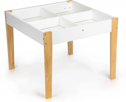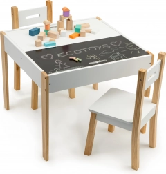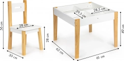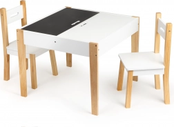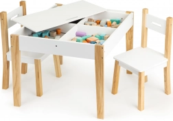 Na het spelen kunnen alle speelgoed eenvoudig worden opgeslagen onder de verwijderbare tafelblad. De set bevat twee comfortabele stoelen met grenen poten.