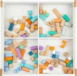 Het tafelblad kan dienen als creatieve ruimte voor creaties en als opslagruimte voor speelgoed.