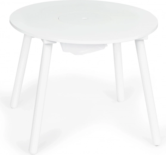 Het ruime ronde blad zonder scherpe hoeken biedt voldoende plek voor tekenen, constructies en tussendoortjes – veilig en overzichtelijk.