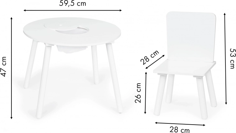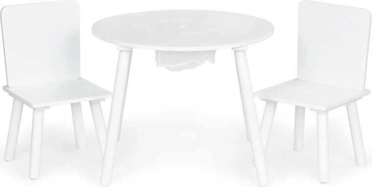 Creëer voor kinderen hun eigen hoekje om te knutselen, bouwen en snacken. Het ronde tafelblad is van duurzaam MDF met een glad, gemakkelijk afwasbaar oppervlak dat dagelijks gebruik aankan. De massieve poten van grenenhout zorgen voor stabiliteit, waardoor de set stevig en veilig is.