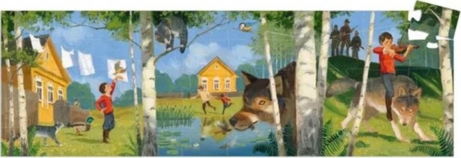 Geniet van betoverend puzzelplezier met de panoramische puzzel van DJECO, geïnspireerd op het klassieke verhaal Peter en de Wolf. Bevat 50 hoogwaardige stukjes en vormt na het leggen een afbeelding van ca. 62 × 20 cm. Ideaal voor de ontwikkeling van de fijne motoriek, concentratie en verbeeldingskracht van kinderen. Inclusief een mooie, gevormde doos – een geweldig cadeau en een decoratie voor de kinderkamer.