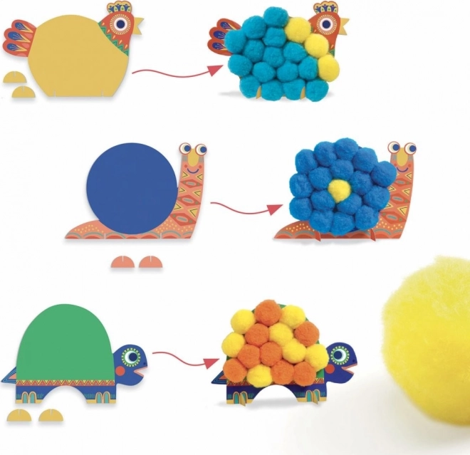 Ontdek het knutselen van dierenfiguurtjes met pompons van Djeco! Deze activiteit stelt kinderen in staat hun fijne motoriek en creativiteit te ontwikkelen. De set bevat drie dieren met oppervlakken waar kinderen gemakkelijk en veilig pompons op kunnen bevestigen. Elk dier heeft een uniek ontwerp dat na voltooiing kan dienen als decoratie of huisdiertje. Dankzij de meegeleverde brochure met instructies is het proces van maken intuïtief en leuk.
