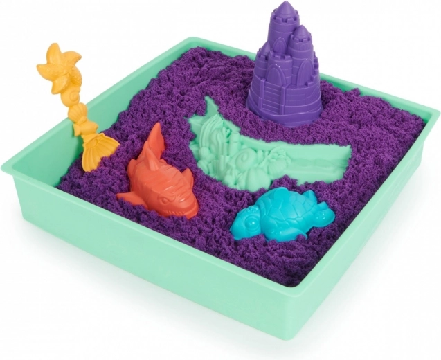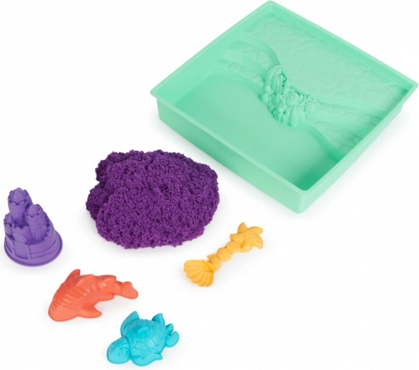Bevat 454 g paars zand, een schepje en diverse vormpjes voor kastelen en zeedieren. De speelbak houdt alles bij elkaar voor eenvoudig opruimen.