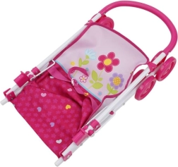 Lichte en eenvoudig te sturen buggy met bloemenbekleding, veiligheidsriem en vier stabiele wieltjes. Perfect voor wandelingen en spelen binnenshuis.