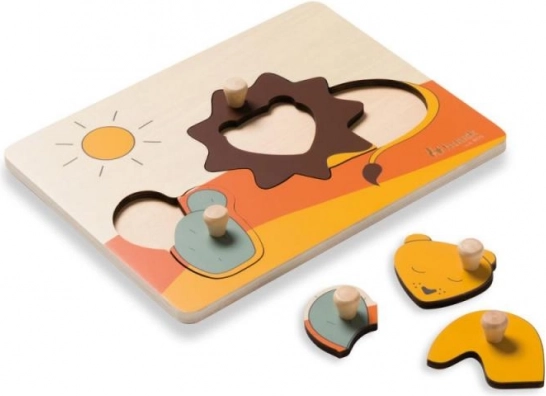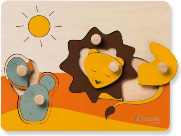 De houten puzzel Hauck Lion is ontworpen voor een veilige en plezierige eerste puzzelervaring. De kleurrijke stukjes met dieren en een zonnetje hebben praktische knopjes die het hanteren vergemakkelijken, de greep versterken en kinderen leren vormen correct op hun plaats te leggen.