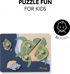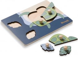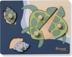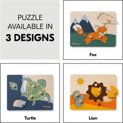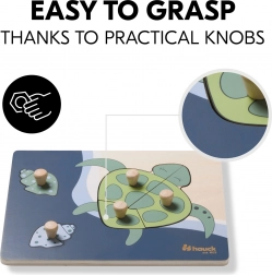De houten puzzel met knopjes Turtle is ontworpen voor kleine kinderhandjes. Elk stukje heeft een houten knopje voor eenvoudige grip en nauwkeurig plaatsen. Door te puzzelen traint je kind de fijne motoriek, oog-handcoördinatie, het geheugen en de waarneming van vormen en kleuren. Afgeronde randen zorgen voor veilig spelen vanaf 12 maanden.