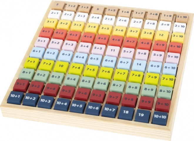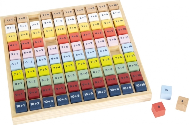 Elk blokje bevat een eenvoudige optelsom en aan de andere kant het juiste antwoord. Kinderen kunnen zo zelfstandig werken, hun resultaten controleren en hun zelfvertrouwen in rekenen versterken. De tafel is gemaakt van duurzaam 100% FSC®-hout, dat milieuvriendelijk is en prettig aanvoelt.