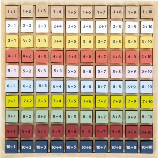 Deze houten educatieve tafel ondersteunt vroege rekenvaardigheid op een speelse manier. Kinderen oefenen de basis van de rekenkunde, optellen tot 20 en ontwikkelen tegelijk hun fijne motoriek door de blokjes in de voorbereide vakjes te plaatsen. Dankzij het heldere kleurontwerp is leren overzichtelijk en motiverend.