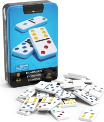 Traditioneel domino in een praktische metalen doos biedt uren speelplezier voor kinderen en volwassenen. Dankzij de gekleurde stippen leren ook jongere spelers het spel eenvoudig en heb je de regels in een mum van tijd onder de knie. Een ideale keuze voor snelle potjes en langer strategisch spel.