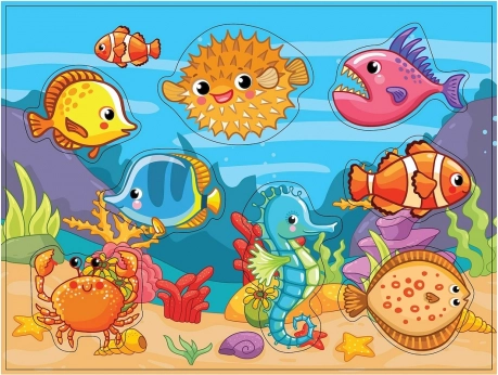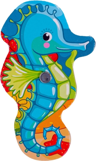 De houten puzzel leert hen kleuren en vormen herkennen en zeedieren benoemen.