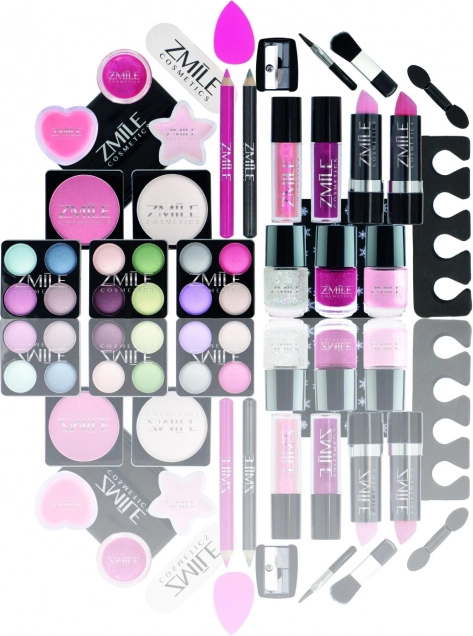 - Complete set: oogschaduw, nagellak, oog- en lippotloden, lipgloss, lipsticks, applicators, spiegeltje