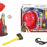 Word een held met de brandweerset voor kinderen, die alles bevat wat nodig is voor gevarieerd brandweerspel: een vest, helm, bijl, bril, brandblusser, koevoet en badge.