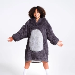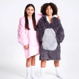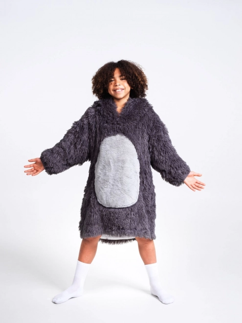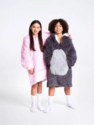 Schattige en praktische warme hoodie-deken voor kinderen van 7–12 jaar met luiaardmotief van COZY NOXXIEZ. Combineert het comfort van een hoodie met de warmte van een deken – superzachte flanel en luchtige sherpa-fleece voor maximale warmte. Voorzien van een grote capuchon, enorme buidelzak en een losse pasvorm voor comfort thuis en buiten.