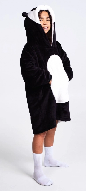 Grote hoodie met capuchon met een dierenthema die fungeert als een heerlijk warme, zachte en fluffy deken die bij elke gelegenheid verwarmt en kinderen bovendien blij maakt met het speelse en aantrekkelijke ontwerp. De binnenkant van de hoodie is gemaakt van warme, pluizige sherpa-fleece en de buitenkant van superzacht, glad materiaal dat gebruikt wordt voor de zachtste dekens. Alle hoodies uit deze serie hebben ook een grote voorzak waarin koude handen heerlijk kunnen opwarmen. Elk kind zal zich er zeker comfortabel in voelen, of het nu thuis op de bank is tijdens tv-kijken of ontspannen, of gewoon tijdens het spelen, zonder dat het de beweging belemmert. Ook zeer praktisch bij kamperen of andere outdooractiviteiten, of gewoon bij buiten zitten in de tuin bij koeler weer. Deze hoodie en deken in één is een mooi en praktisch cadeau. In het assortiment van Cozy Noxxiez vind je in veel gevallen in hetzelfde design ook een warme pluchen 3-in-1 kussen, een reuzenwarme pantoffel of een warme deken met capuchon met dierfiguur en pootzakken, zodat je een perfect bij elkaar passende warme set kunt samenstellen.