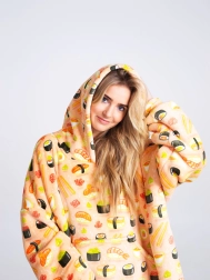 Cozy Noxxiez hoodie-deken met capuchon sushi – oversized draagbare deken