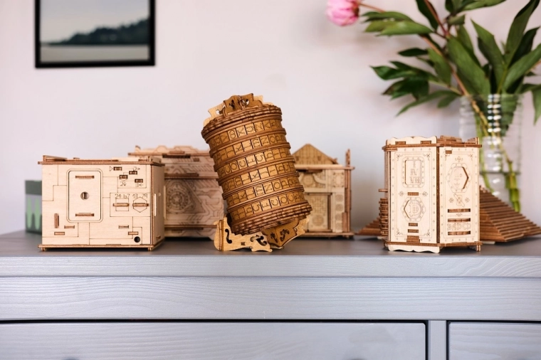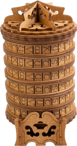 Draairingen met letters maken het mogelijk je eigen combinatie in te stellen en de Cryptex te veranderen in een slimme opslag voor kleine cadeaus of geheime berichten.