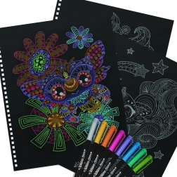 De set bevat 8 metallic gelpennen die prachtig uitkomen op de zwarte pagina’s. Elke lijn accentueert details en geeft je tekeningen een luxe glans.
