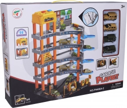 Bouw je eigen parkeerstation met garage, dat vier auto's, een wasstraat, een tankstation, een service en een elektrische lift bevat.
