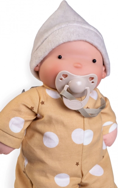 Deze handgemaakte ARIEL-pop is gemaakt voor zacht knuffelen en eerste rollenspellen. Ze combineert organische materialen met hoogwaardige afwerking: lijfje en ledematen van organisch katoen, hoofd van 100% siliconen en een vulling van zachte PET-vezel uit gerecyclede flessen. Dankzij de magnetische speen oogt en voelt ze realistisch, terwijl ze veilig is voor baby’s en peuters.