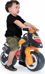Stijlvolle loopmotor voor kinderen in zwart-oranje REPSOL-design ondersteunt de ontwikkeling van evenwicht, coördinatie en zelfvertrouwen bij de eerste ritjes. Dankzij de brede wielen en het laag geplaatste zadel is het rijden stabiel en comfortabel op diverse ondergronden.