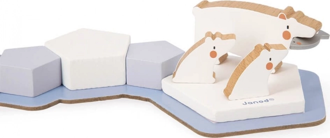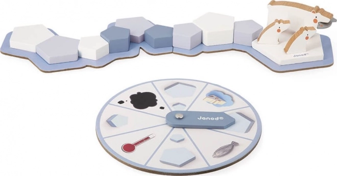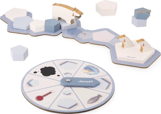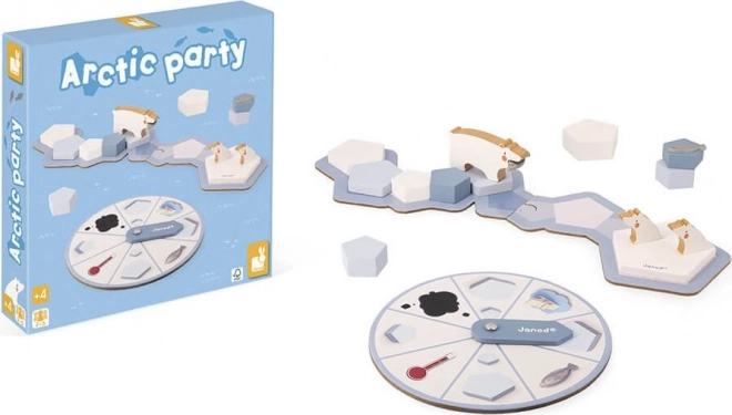 Janod Tafelspel Arctic Party is ideaal voor iedereen die houdt van strategische spellen met een ecologisch thema. Spelers moeten zorgen voor de ijsbeer, die ze helpen om vissen aan zijn welpen te bezorgen. Het doel is om alle obstakels, zoals smeltende gletsjers of olievlekken, te vermijden.