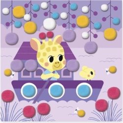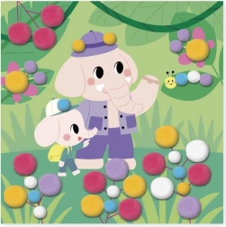Kinderen plakken simpelweg pompons in de juiste kleur en maat op de aangegeven plaatsen volgens de instructies en de kleurcontouren op de afbeeldingen. Het voltooien van elke afbeelding duurt ongeveer 20 minuten, ideaal voor de geduld en concentratie van jonge kinderen.
