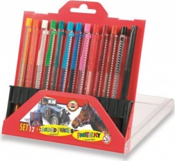 De set is opgeborgen in een afsluitbaar plastic doosje, dat tijdens gebruik tevens fungeert als een praktische standaard voor overzichtelijke opslag. Ideaal voor schoolprojecten, creatief thuisgebruik en dagelijks kantoorgebruik.
