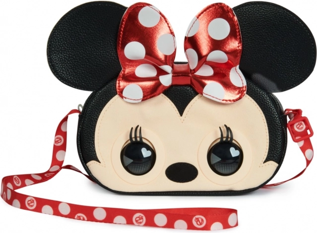 Introduceert de interactieve tas Minnie Mouse van Disney! Deze unieke tas reageert op aanraking, knipoogt, en kan je zelfs een kusje sturen. Gemaakt van materialen zoals kunstleer en suède, is deze versierd met de kenmerkende rode strik met witte stippen en opvallende, charmante ogen.