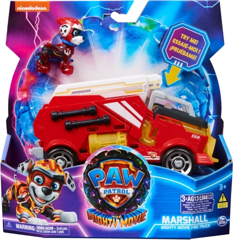 Ga met Marshall op spannende reddingsmissies in zijn reddingswagen uit de film PAW Patrol: De Machtige Film! Dit PAW Patrol-voertuig is 18 centimeter lang en meer dan 7,5 centimeter hoog, heeft een supergestroomlijnd design, een inklapbare ladder en opwindende geluidseffecten met gesynchroniseerde knipperende lampen – een fantastische toevoeging aan de collectie van elke PAW Patrol-fan (batterijen inbegrepen)! Marshall draagt zijn rode uniform uit PAW Patrol: De Machtige Film, met transparante details en een coole helm. Zet Marshall op de bestuurdersstoel van zijn brandweerwagen om verlichting op verschillende plekken van het voertuig te activeren en zie hoe zijn pootjes oplichten, zodat elke reddingsmissie nog spannender en leuker wordt terwijl je van de ene missie naar de andere rijdt! Met PAW Patrol-speelgoed kunnen kinderen hun verbeelding en motorische vaardigheden ontwikkelen en tegelijk hun favoriete scènes uit de film naspelen. Voor nog leukere en spannendere missies geïnspireerd op PAW Patrol verzamel je al het speelgoed uit de films, zoals het Command Aircraft Carrier, en alle speciale PAW Patrol-edities voor jongens en meisjes, zoals Mighty Pups, Aqua Pups en Big Truck Pups figuren en speelfiguren (elk afzonderlijk verkrijgbaar), en beleef eindeloze avonturen met je favoriete hondenheld en Marshalls reddingsvoertuig uit PAW Patrol: De Machtige Film!