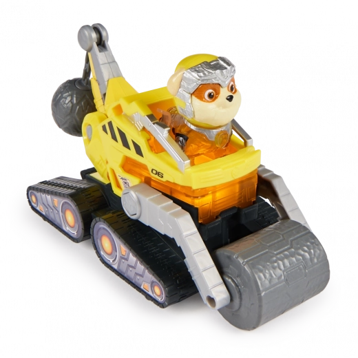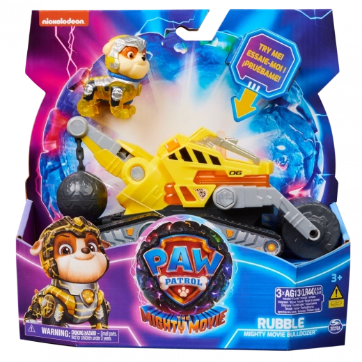 Beleef actievolle reddingsmissies met Rubble en zijn bouwvoertuig uit de film PAW PATROL: DE FILM. Het robuuste voertuig met een voorste wals, wringkogel, knipperende lichten en geluidseffecten (batterijen inbegrepen) is ideaal voor jonge fans. Door het figuurtje op de stoel te plaatsen activeer je verlichting op meerdere plekken van het voertuig, waardoor elke missie nog spannender wordt.