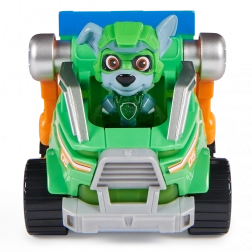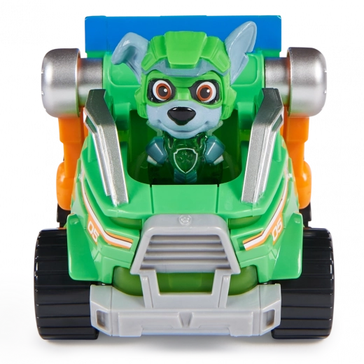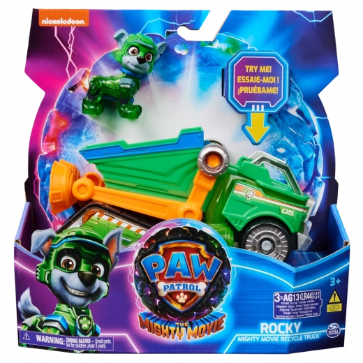 Ga met Rocky mee en beleef spannende reddingsavonturen in zijn voertuig uit PAW Patrol: De Machtige Film! Dit vuilniswagenmodel van PAW Patrol is meer dan 18 centimeter lang en 10 centimeter hoog, heeft een superelegant design, bewegende armen voor de vuilnisbakken en spannende geluidseffecten met gesynchroniseerde knipperlichten, waardoor het een fantastische aanwinst is voor de collectie van elke PAW Patrol-fan (batterijen inbegrepen)! Rocky draagt zijn groene uniform uit PAW Patrol: De Machtige Film, met transparante details en een prachtige helm. Zet Rocky op de bestuurdersstoel van zijn vuilniswagen om de verlichting op verschillende plaatsen van het voertuig te activeren en zie hoe zijn pootjes oplichten, zodat de reddingsmissie nog spannender en leuker wordt terwijl je met zijn reddingsvoertuig van de ene missie naar de andere rijdt! Met PAW Patrol-speelgoed kan je kind tijdens het spelen de verbeelding en motorische vaardigheden ontwikkelen en tegelijkertijd favoriete scènes uit de film naspelen. Voor nog leukere en spannendere missies geïnspireerd op de PAW Patrol-serie verzamel je al het speelgoed uit de films, zoals het geweldige commandovliegdekschip, en de speciale PAW Patrol-edities voor meiden en jongens, zoals de Mighty Pups-, Aqua Pups- en Big Truck Pups-figuren en -speelsets (elk afzonderlijk verkocht), en geniet je van eindeloze avonturen met je favoriete hondenheld en Rocky’s reddingsauto uit PAW Patrol: De Machtige Film!