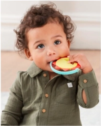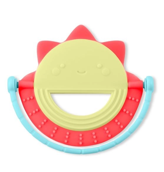 Een schattige zonvormige bijtring die helpt bij doorkomende tandjes. Het zachte siliconen materiaal heeft een structuur die geschikt is om op te bijten en vermaakt je kind tegelijkertijd. De gemakkelijk vast te houden vorm heeft ook een beweegbare ring die kleine handjes kunnen ontdekken.