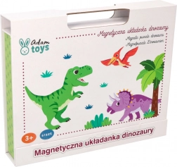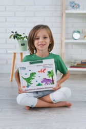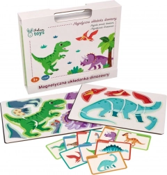 Inhoud van de verpakking: magnetisch bord 26 × 19 cm, 10 kleurrijke kaarten met afbeeldingen en namen van dinosaurussen en 51 magnetische stukjes om te leggen. Het product is gemaakt van veilige materialen en voldoet aan de CE-normen.