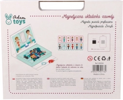 Ontdek een leuke en educatieve game voor kinderen vanaf 3 jaar: een magnetische puzzel met beroepen die de fijne motoriek, het logisch denken en de oog-handcoördinatie ontwikkelt. Dankzij het opklapbare bord met handvat is het ideaal voor thuis en voor onderweg – kinderen maken figuren van astronaut, brandweerman, ballerina, dokter of piloot van gekleurde magnetische stukjes.