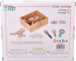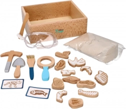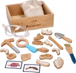 In de verpakking zit alles wat een kleine paleontoloog nodig heeft: van een ontdekkerskistje en gereedschappen (hamertje, loep, mesje, kwastje, schepje) tot dinosaurusbotten, vissen en fossielen. Twee dubbelzijdige kaarten helpen bij het eenvoudig identificeren van opgegraven vondsten. Het zand is geproduceerd in de EU en voldoet aan de veiligheidsnormen.