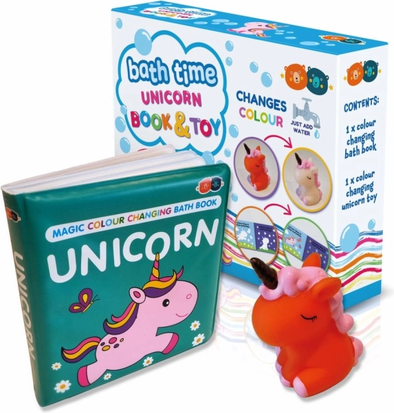 Deze speelse badset combineert plezier en leren. Het waterbestendige boekje met eenhoorn verrast met een magisch effect – de illustraties veranderen onmiddellijk van kleur zodra ze nat worden. Voeg daar een zachte eenhoornfiguur voor in de hand aan toe en je kind zal elke dag naar het badderen uitkijken.